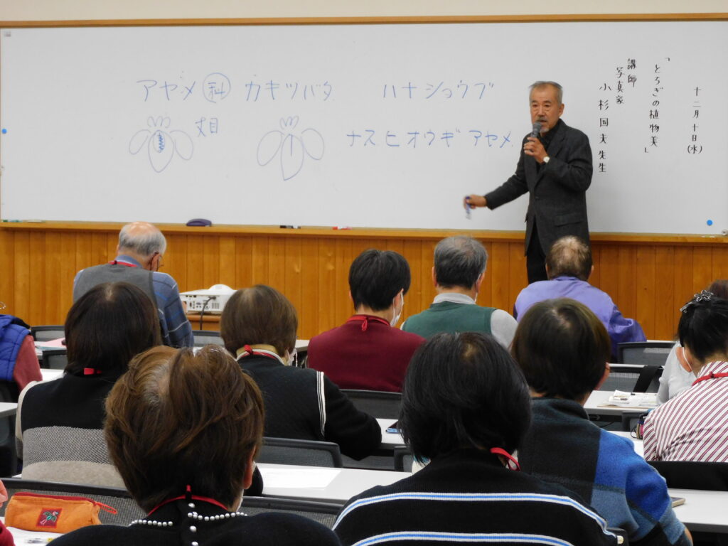 45期生一般科目「とちぎの植物美」では、写真家:小杉国夫先生より、四季を通じて多くの花が見られる栃木県の、自然の中に咲く美しい花々とともに名所も合わせ、数々の素敵な写真と写真を撮る時のポイントを教えていただきました。