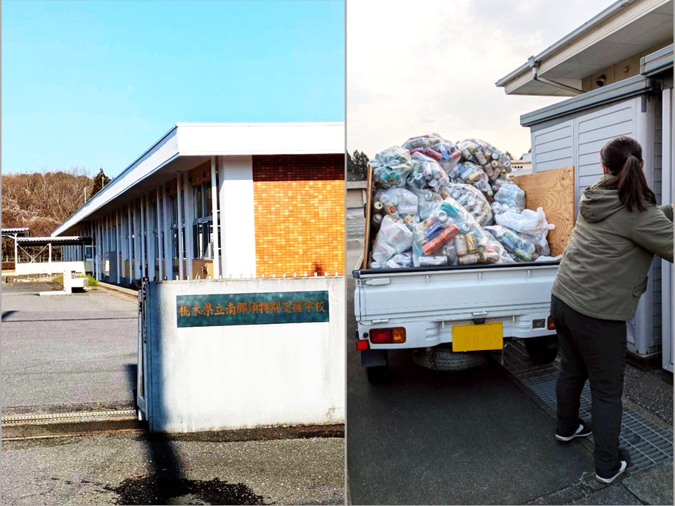 奉仕委員会ではリサイクル活動の一環として、在校生から提供されたアルミ缶を回収し、栃木県立南那須特別支援学校へ定期的に(下期3回)子供達の教材として提供しています。今後もリサイクル活動の推進のため、在校生の皆様にはアルミ缶回収に御協力をお願いいたします。