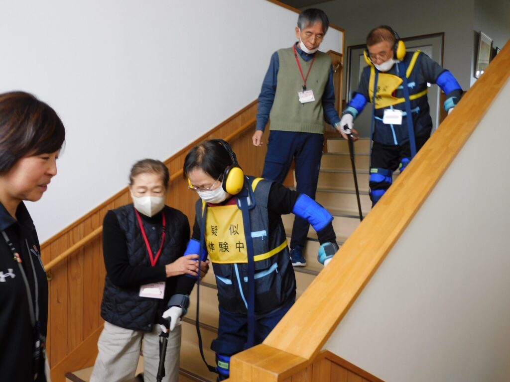 45期生スポーツレクリエーション学科「救急法(AED講習)」では、矢板消防署の方より応急手当の基礎知識や救命処置について学び、心肺蘇生法・AED操作の体験をしました。福祉学科「高齢者トレーニングサポーター」では、加齢による身体機能の変化やそれに伴う不便さ、精神的負担を疑似体験装具を装着して体験し、適切な援助や配慮の重要性を学びました。