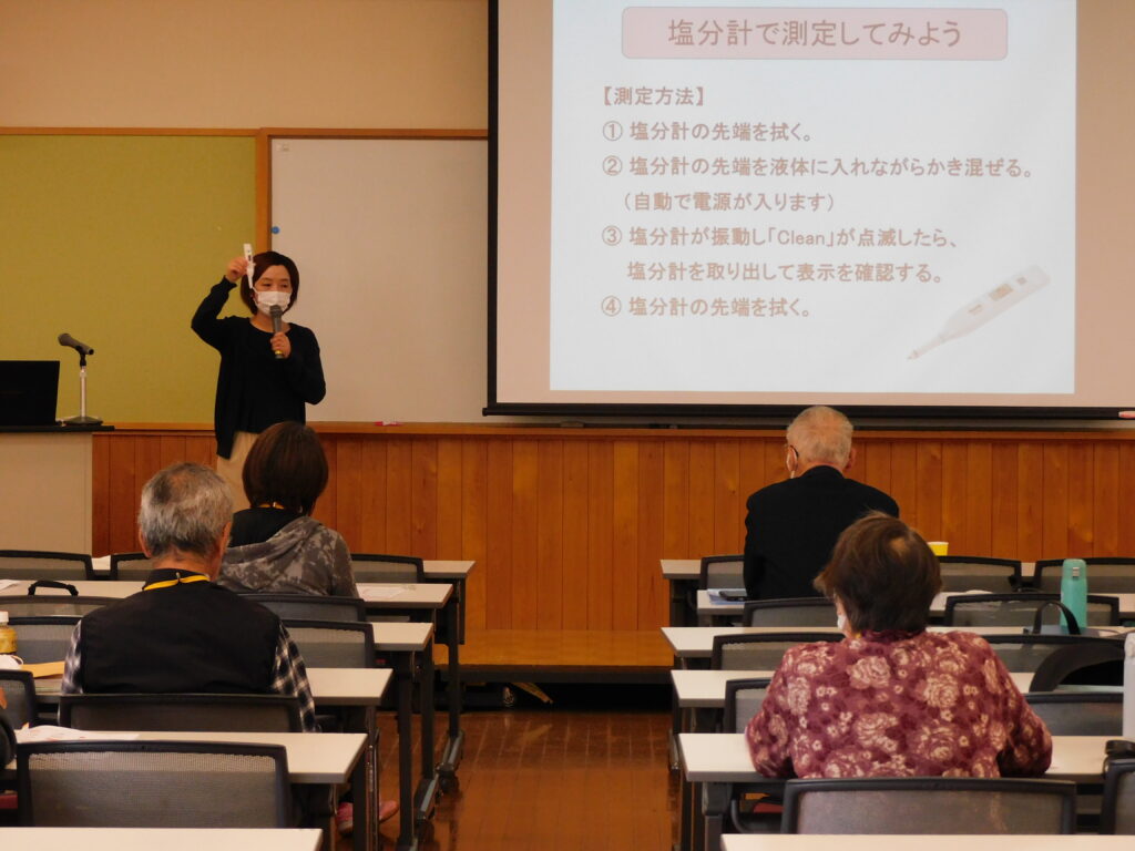 46期生健康づくり科目「食生活の工夫」では、自身の食生活を見直し生活習慣病やフレイル予防、また心身の健康を維持するためバランスのとれた食事が選択できるように食生活の基礎を学びました。