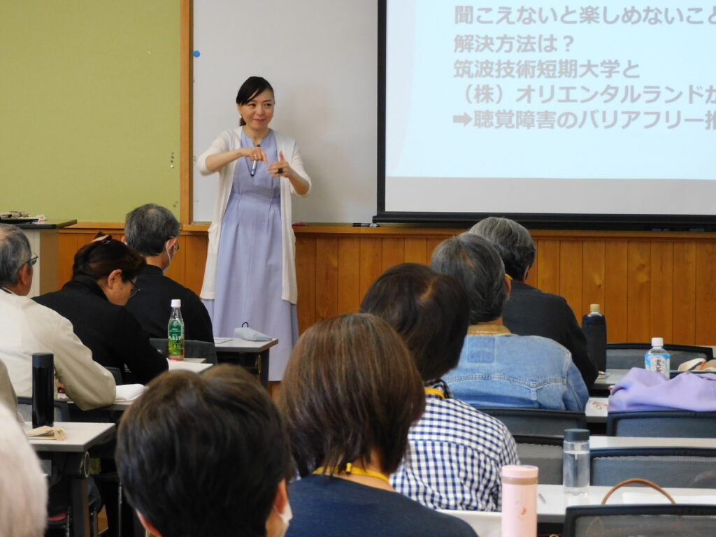 46期生一般科目「私のライフワーク、ユニバーサルデザイン」では、聞こえる世界と聞こえない世界をつなぐユニバーサルデザインアドバイザーとしてご活躍され、中途失聴者である松森果林先生より、コミュニケーションの多様性や手段、手話の魅力等を学びました。
