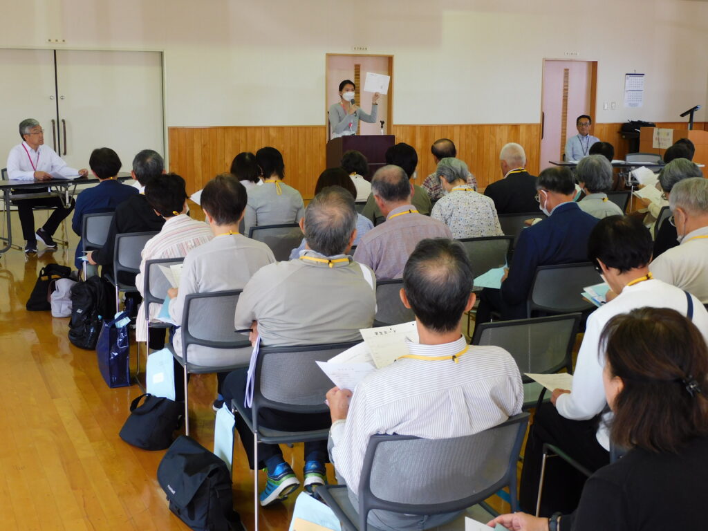 46期生最初の授業は「オリエンテーション」を行いました。学校生活を送るにあたっての説明や、学生自治会活動について、また、自己紹介や入学の動機・今後の抱負などを班ごとに話し合いコミュニケーションを図り、初対面の仲間を理解していただくために座談会を行いました。