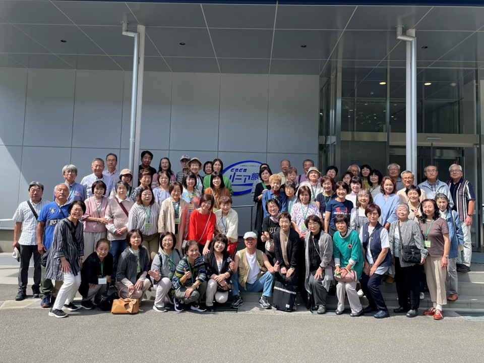 9月25日(木)、44期生は卒業旅行で山梨県方面に向かいました。出発後、自治会長の挨拶に続き、みんなで懐かしい歌を歌いました。現地到着後、山梨県立リニア見学センターを見学しました。時速500km/時のリニア新幹線の走りを間近で見ることができました。昼食は、大月駅前の濱野屋さんでほうとう料理をいただきました。午後は、シャトー勝沼にて試飲と買い物を楽しみ宿舎へ向かいました。良いお天気と心地よい秋風に恵まれ、楽しかった2年間の学生生活を振り返りながら睦まじいひと時を過ごすことができました。
