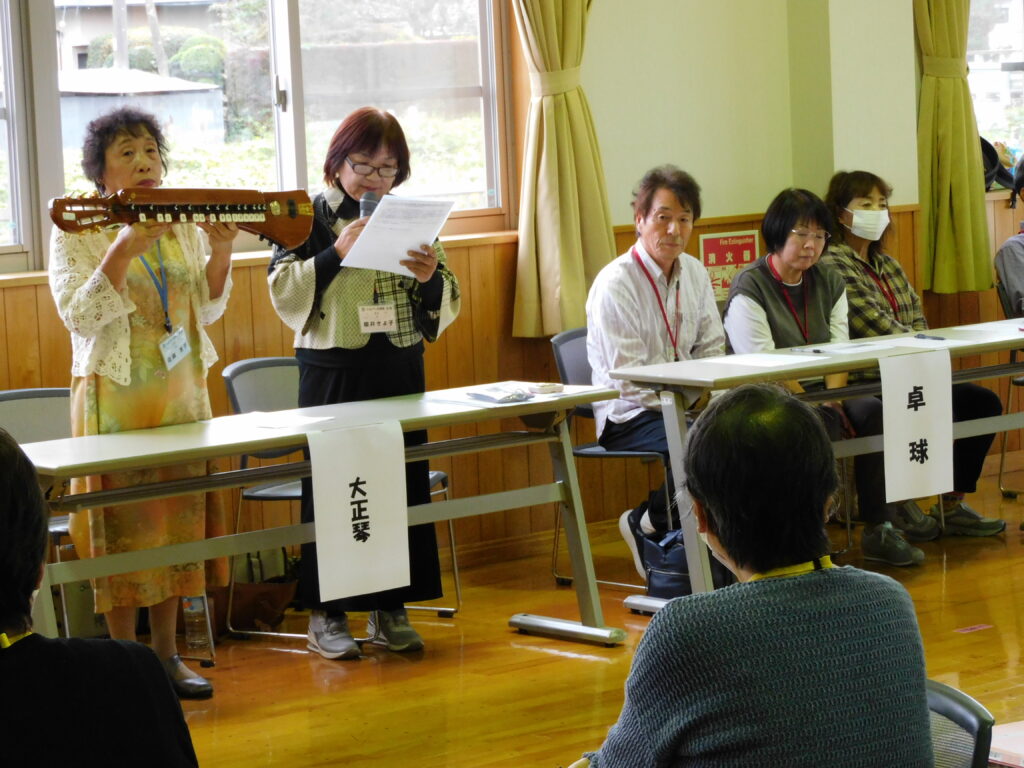 敬老の日の前日となる9月14日(日)、矢板市大槻自治公民館で開催された敬老会イベントにウクレレクラブがゲストとして招待されました。会場参加者45名(含むスタッフ)、当ウクレレクラブからは総勢13名(45期生2名、OB11名)が加わりました。曲の演奏だけでなく、参加者の心に響く懐かしい曲の歌唱を行いました。オプションとして円熟味溢れるフラも披露しました。OBのユーモアある司会とクイズも交え、会場が大いに盛り上がりました。